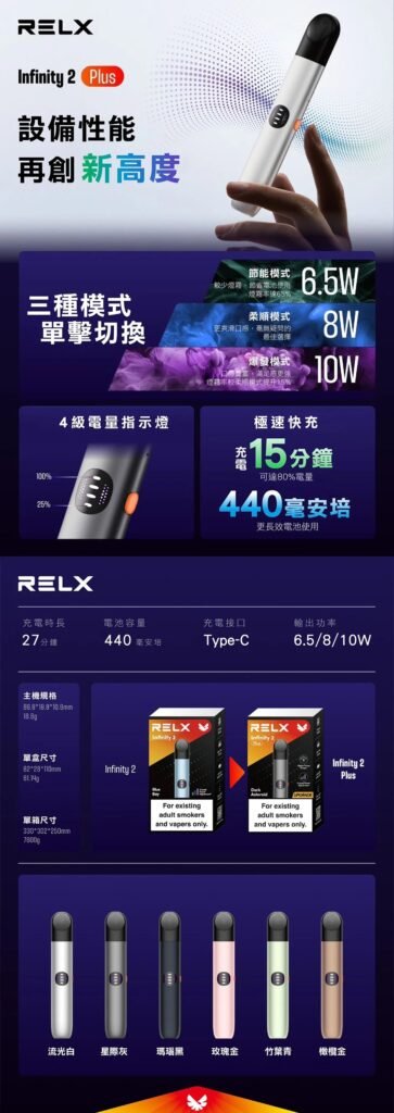 5. 全系列煙彈兼容:完美支援4-5代及Relx 6代 Infinity Pro 2可調式煙彈.